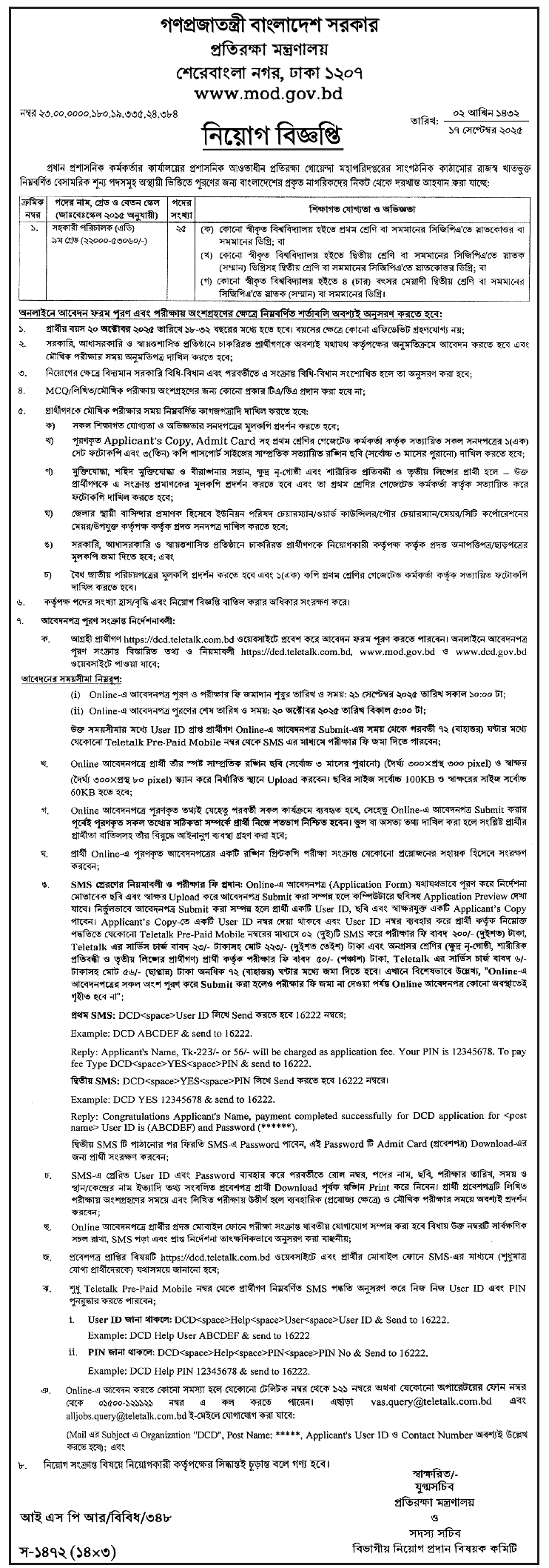 | Job Circular Title | Ministry of Defence Job Circular 2025 |