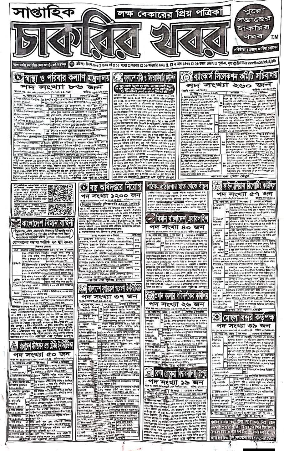 Saptahik Chakrir Khobor 16 January 2026 সাপ্তাহিক চাকরির খবর has been published to unemployed people. The Saptahik Chakrir Khobor on